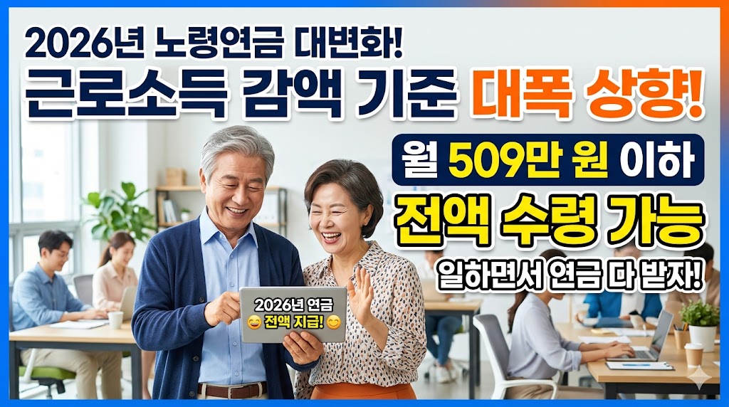 노령연금 근로소득 감액 기준 어떻게 달라지는지 막막하다면? 2026년 6월 시행되는 감액 구간 폐지 및 월 509만 원 미만 전액 수령 기준을 포함한 구체적인 변경 내용과 시니어 대응 방법을 단계별로 완벽하게 정리했습니다. 지금 바로 확인하세요. 열심히 일했는데 오히려 국민연금이 깎인다는 사실, 억울하셨던 적 있으신가요? 은퇴 후 생계를 보태려고 재취업이나 아르바이트를 했다가, 평생 납부한 연금이 줄어든다는 통보를 받으셨다면 얼마나 황당하셨을지 충분히 이해합니다. 그런데 이제 그 답답함이 상당 부분 해소됩니다. 2026년 6월부터 노령연금 근로소득 감액 기준이 대폭 상향되어, 월 소득 509만 원 미만이라면 일을 해도 연금을 100% 그대로 받을 ..